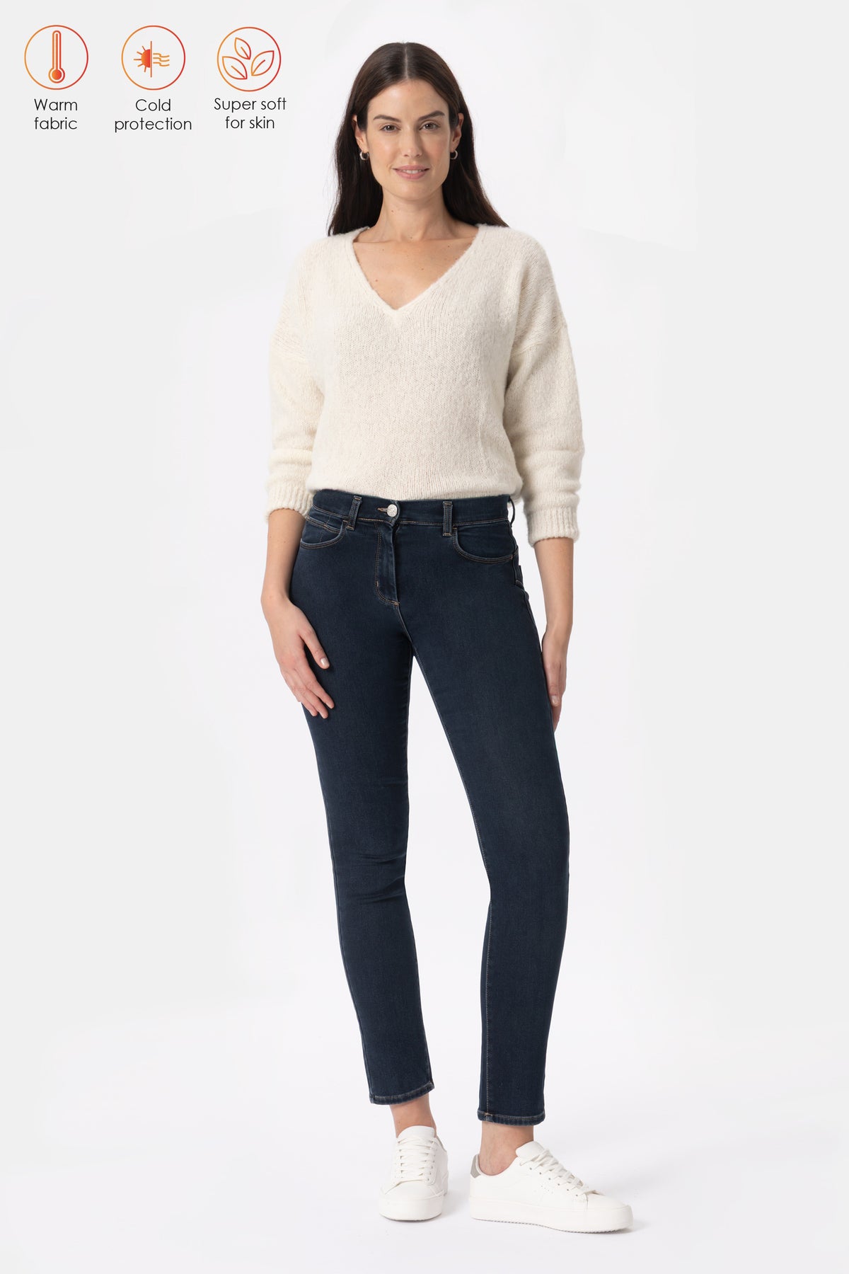 Pantalone regular 5 tasche termico super stretch, vita regolare e attuale dona comodità e calore. Chiusura con zip e bottone, pratiche tasche. Un Pantalone caldo perfetto per le giornate più fredde realizzato con uno speciale denim felpato al suo interno.